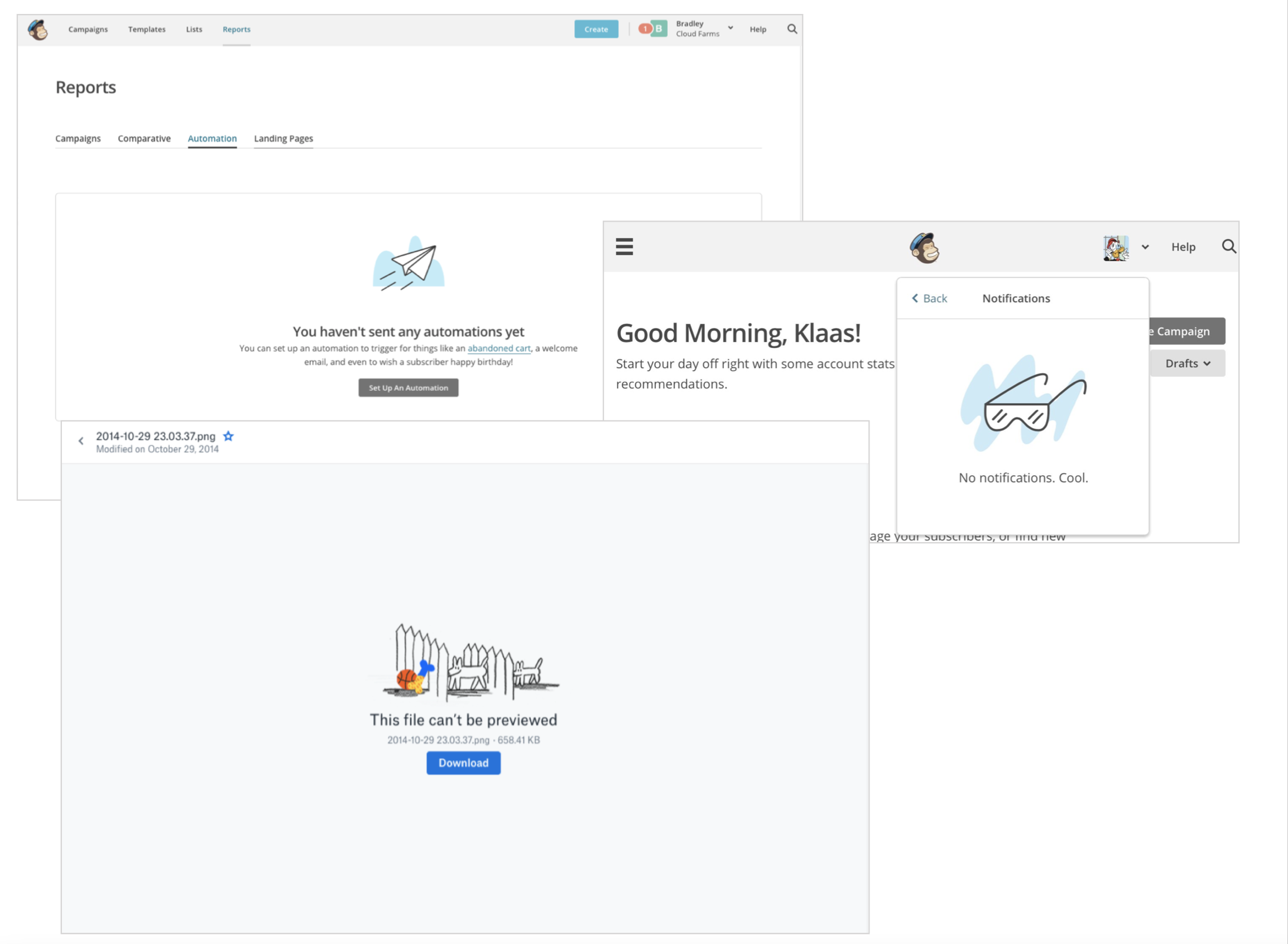 Simple Illustrations: Mailchimp and Dropbox had simple, effective empty states that still showed off the brand’s personality